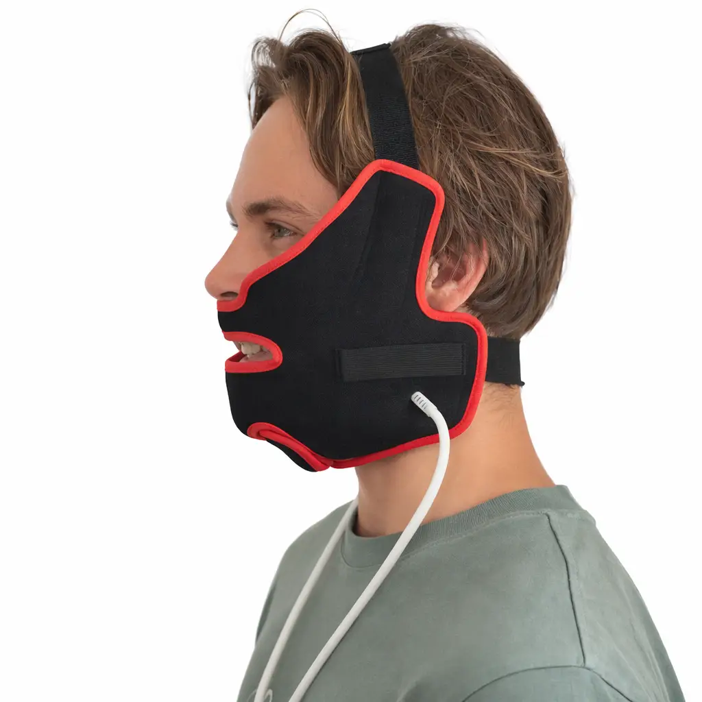 L’attelle maxillo-faciale est spécialement conçue pour la zone du visage, l’attelle diffuse un flux d’eau ciblé et maîtrisé, favorisant une récupération plus rapide et plus confortable.